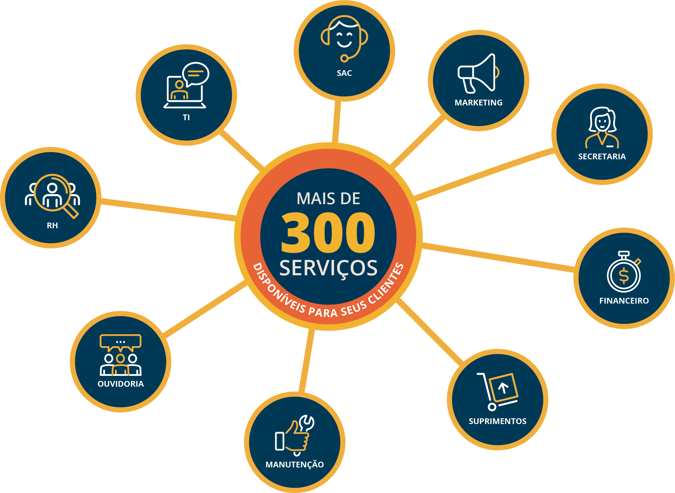 Ele é composto por uma Central de Serviços Compartilhados – CSC, com mais de 300 serviços distribuídos nas principais áreas de negócio.